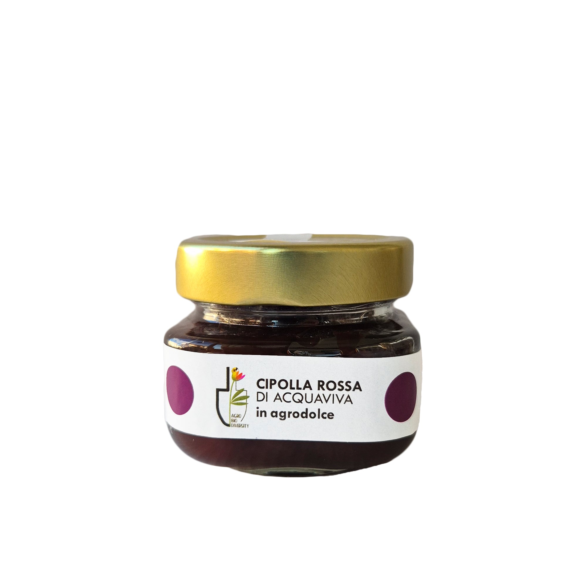 Ingredienti: 80% cipolla di Acquaviva delle Fonti 10%, zucchero di canna, 4 % vino primitivo, 4% aceto di vino, 2 % miele, sale